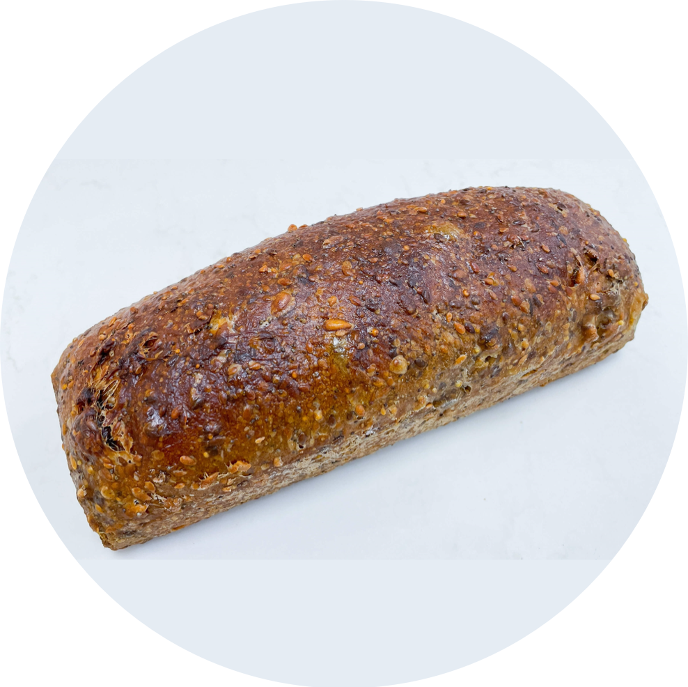 pain de campagne, relevé aux figues, au chorizo, au piment végétarien, à l’ail et aux herbes de Provence, pain aux céréales, pain tradition, pain sportif, pain de seigle, pain complet, pain créatif au curcuma, au charbon à l’awara, au couac…